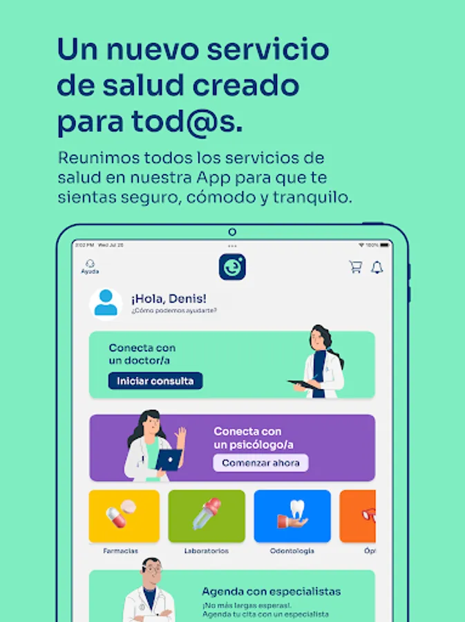 Somos un grupo de gente pensando en la gente desarrollando tecnología para dar acceso a millones de personas en la región a través de TELEMEDICINA y soluciones de SALUD DIGITAL para la comodidad de nuestros usuarios.