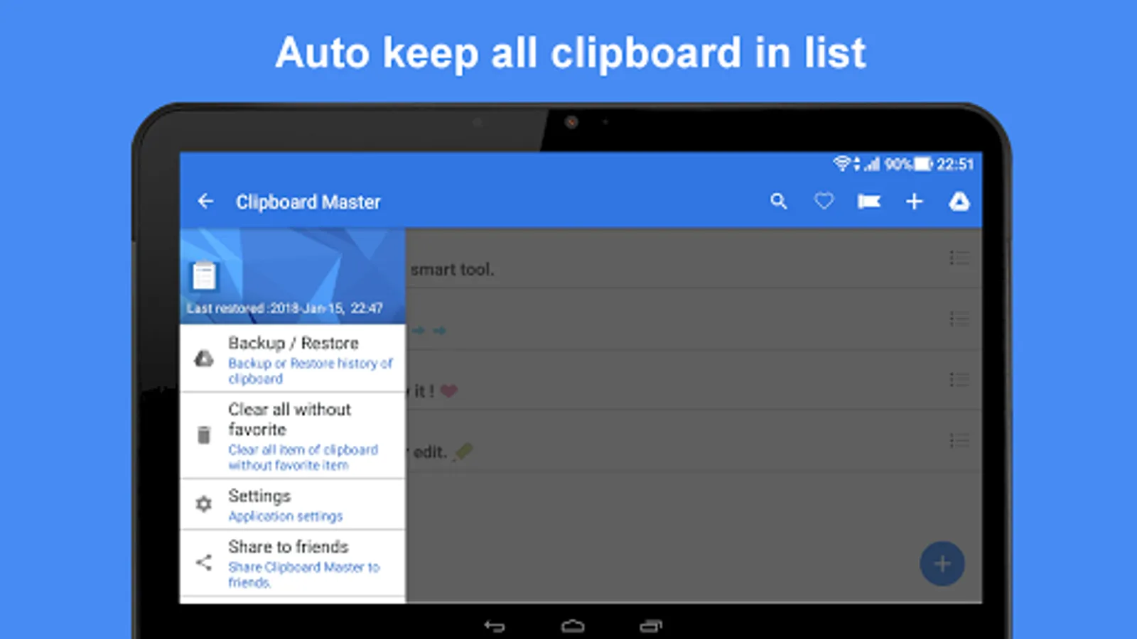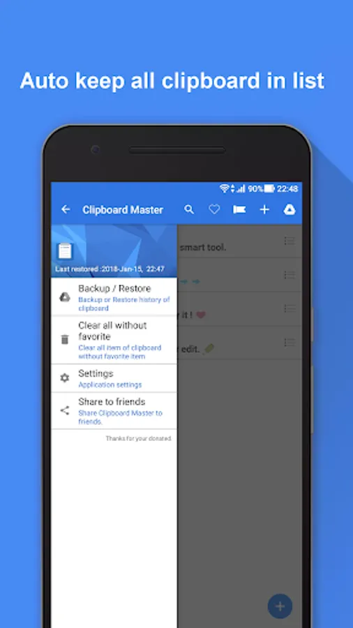then restore it to your all devices for sync the clipboard with same account.