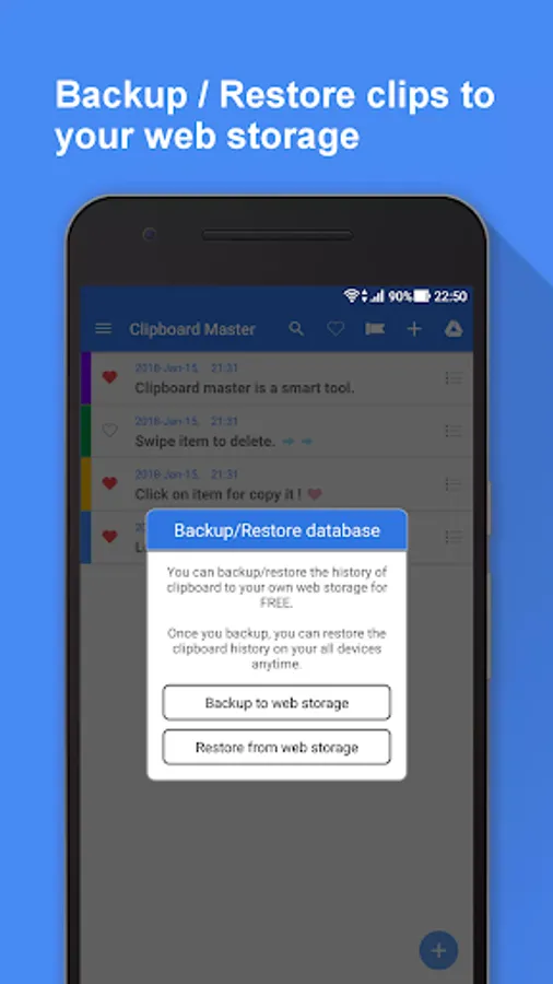 You can also backup the history of clipboard to your own web storage(Google Drive),
