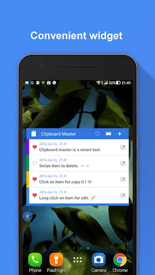 The floating window help you to copy the history of clipboard anytime, anywhere.