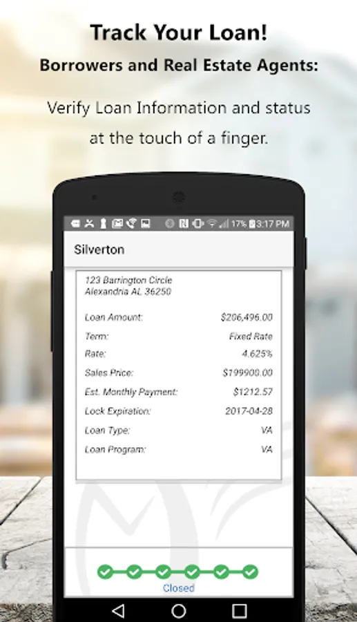 Silverton Mortgage offers mortgage customers a unique way of communicating and interfacing with their realtor and loan officer. The app can easily provide loan information and status, have push notification reminders for important dates (appraisal, closing, rate lock etc.), initiate a chat, provide all the essential details of the loan process, Mobile Capture Technology to securely upload documents, and allows consumers the ability to view and download loan documentation (approval, appraisal and closing docs).