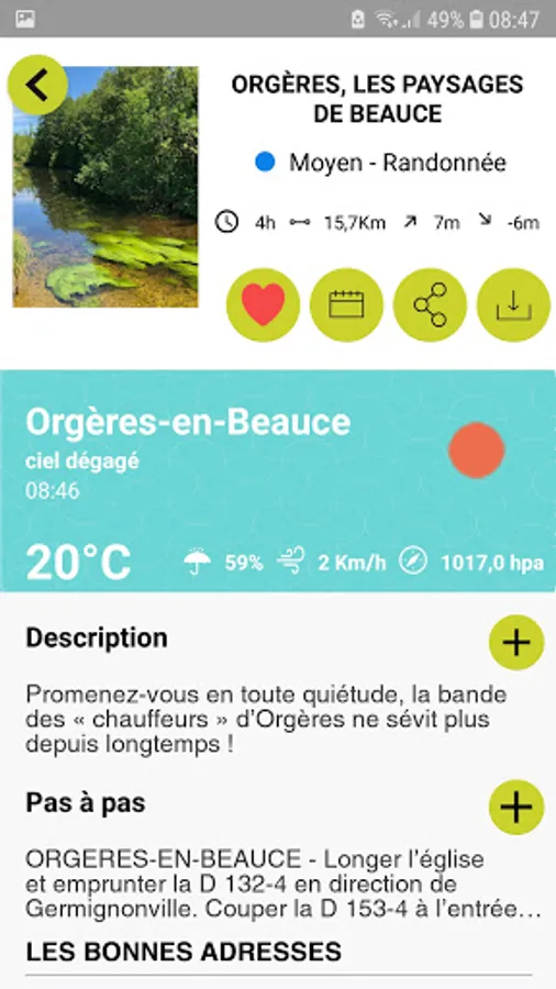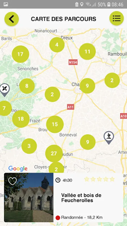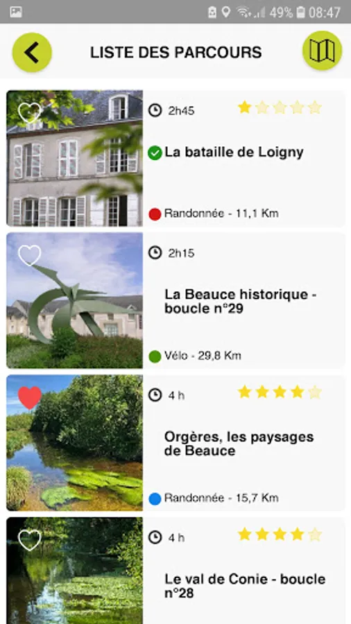 • a choice of routes according to simple criteria: geolocation, duration, level of difficulty