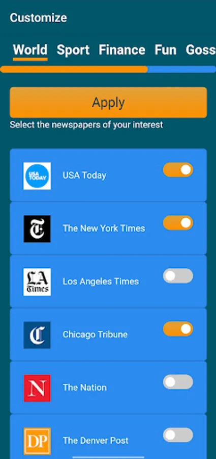 The major newspapers, from world news to economics, from sports to entertainment, from gossip to the latest updates on technology, all in one application.