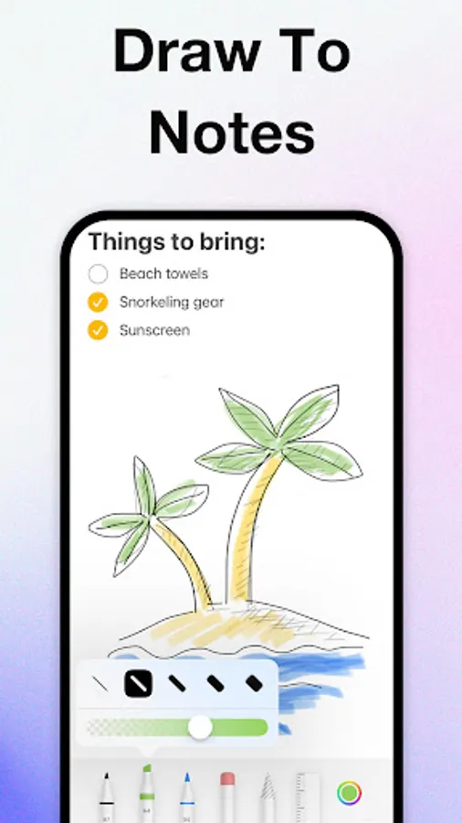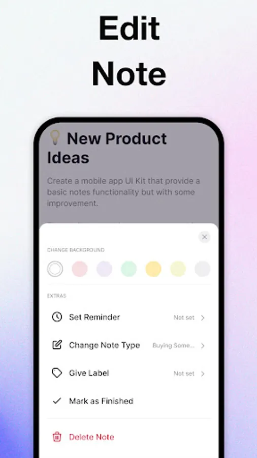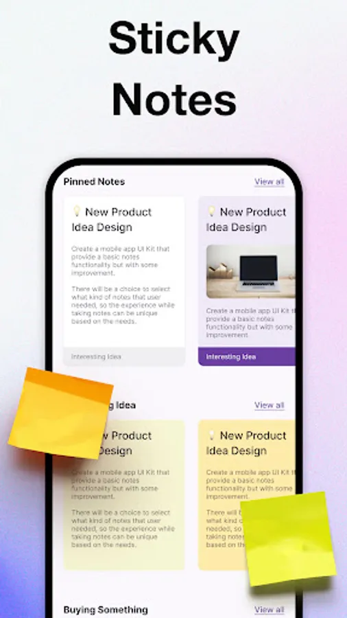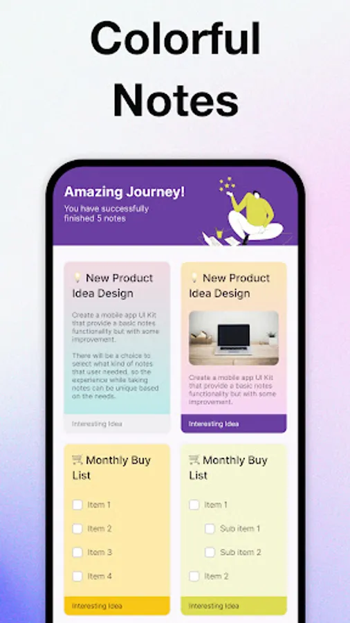 The widgets on home screen will helps you take notes quickly and you can access your notes conveniently. And there are various color note widget themes for you to make you have a better experience.