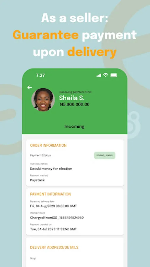 2. Confirmation Feature: Easily release funds to the receiver upon confirmation of delivery. With a simple in-app process, you can initiate the payment release, ensuring a seamless and efficient transaction flow.