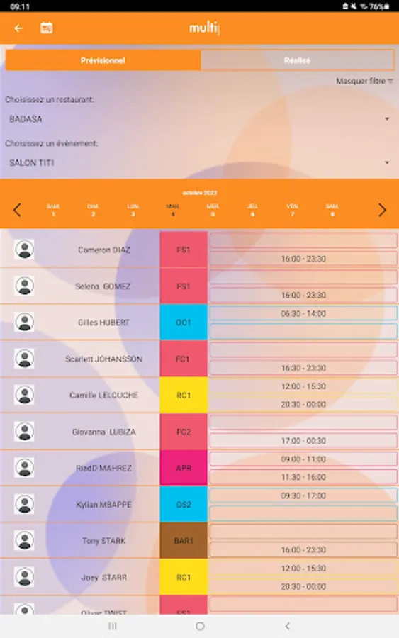 Il s'agit d'une application pour la gestion et la planification des restaurants et des employés.