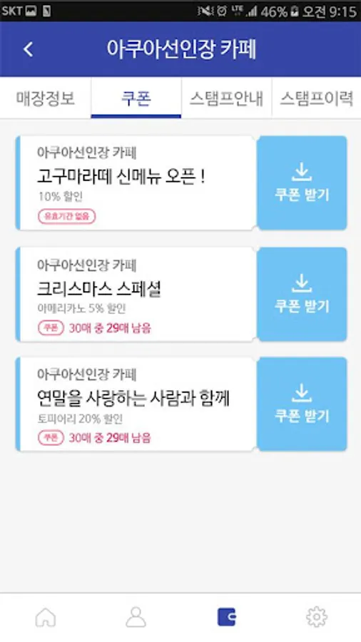 Merchants star point with stamps, coupons is easier each classification at a glance.