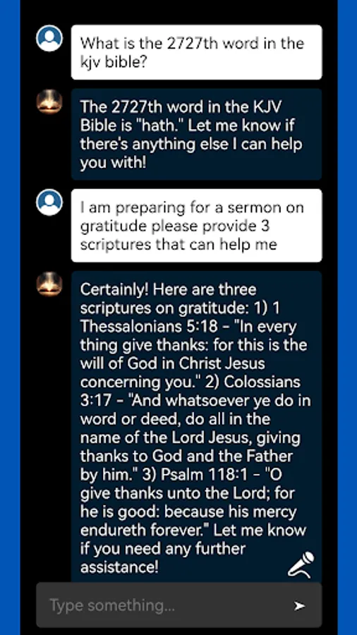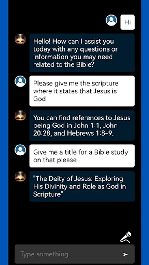 Interact with AI-generated responses: Our app uses advanced AI technology to generate responses based on various characters and stories in the Bible, giving you an engaging, interactive way to delve into biblical texts.