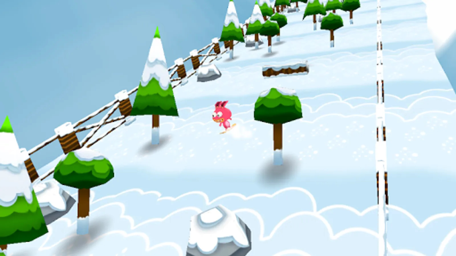 Go downhill successfully, avoiding pine、rocks、tree trunk falling on snowfield, how far could you go with it?