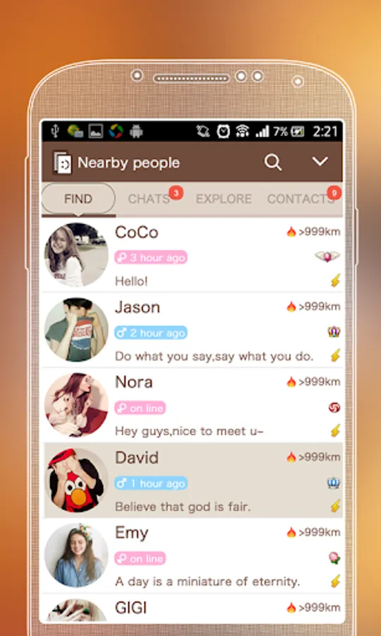 This is a theme for an amazing application that can let you find people nearby. It will give you a fresh look and feel. In order to use this, you need to install it first. It is a super cool app that can let you chat with nearby people. You can just explore it by yourself!