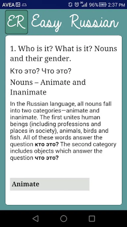 Easy Russian is a free Russian learning application, for those who want to improve their Russian and make an excellent Russian vocabulary knowledge with almost 5000 Russian words.