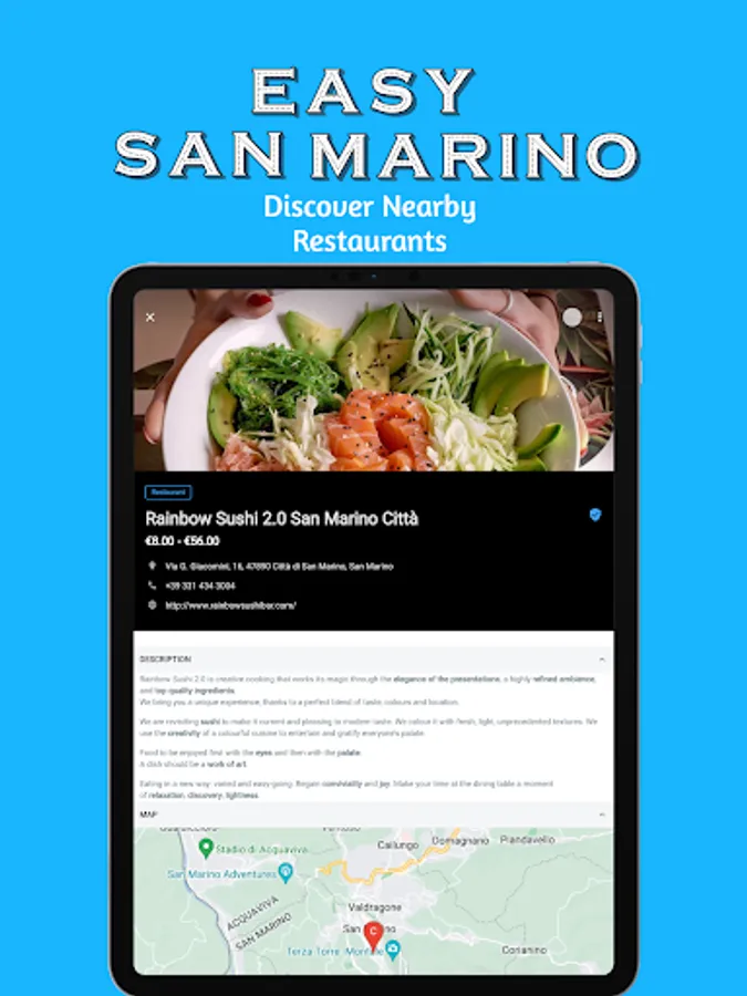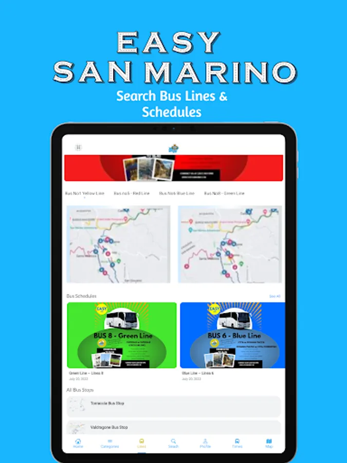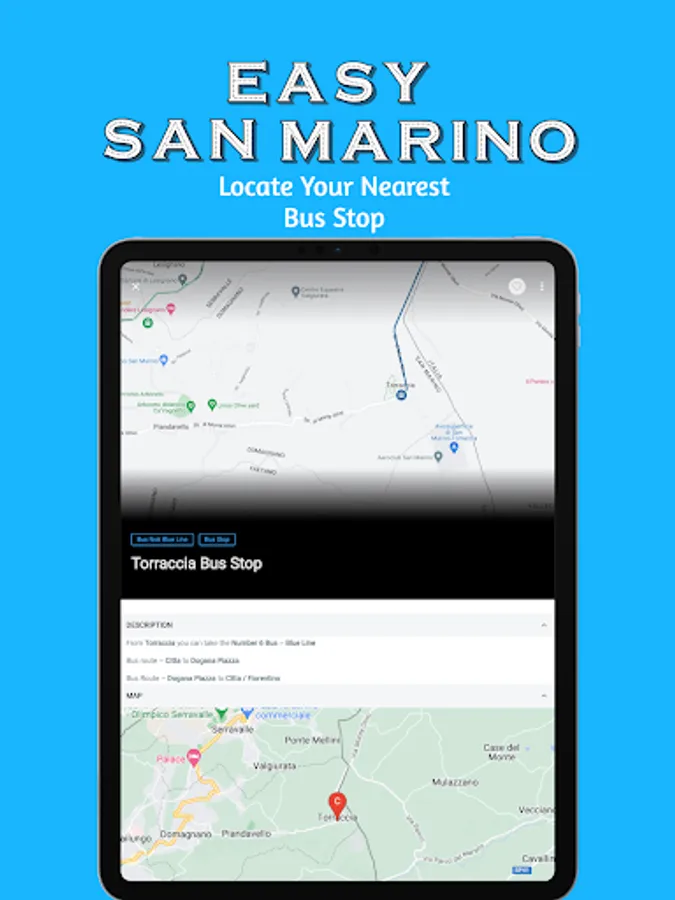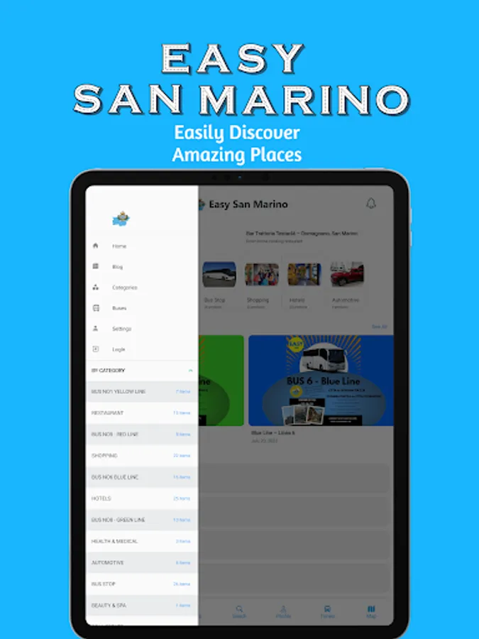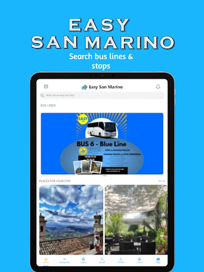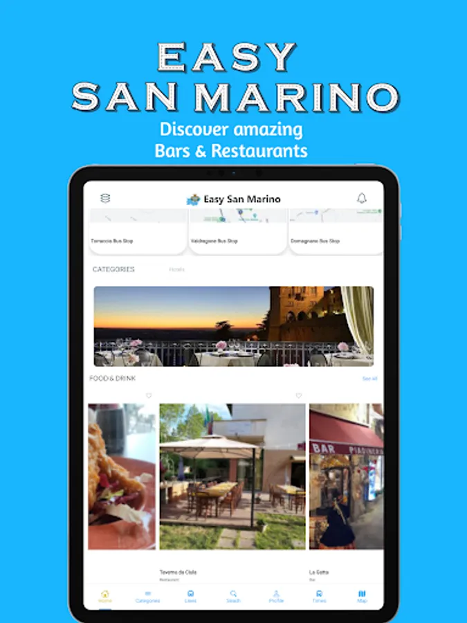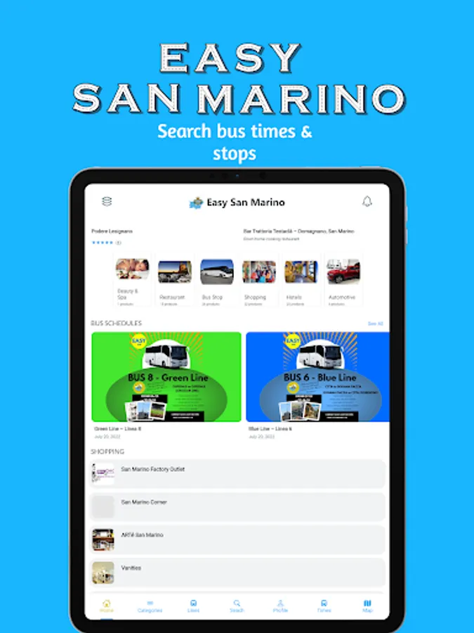 Easy San Marino - Local Search Engine is an application that helps tourists and locals find their way in the Republic of San Marino. You locate your nearest bus stop, local place or service centre by category and location. Whether you are looking for an available bus route, a lovely place to get some food, drinks, check bus schedules, do some shopping or are simply looking for a solution to your problems in Citta, Acquaviva, Borgo Maggiore, Serravalle, Fiorentino, Montegiardino, Domagnano, Chiesanuova or any local area, the Easy San Marino app will help provide you with appropriate responses. With our number 1 app, you can search and also add local establishments, food and drink, bus stops, organisations, shops, healthcare centres, real estate, local activities, and all the daily required services. Directory applications are an incredible way to promote organisations, so do urge your neighbourhood establishments to add their listings.