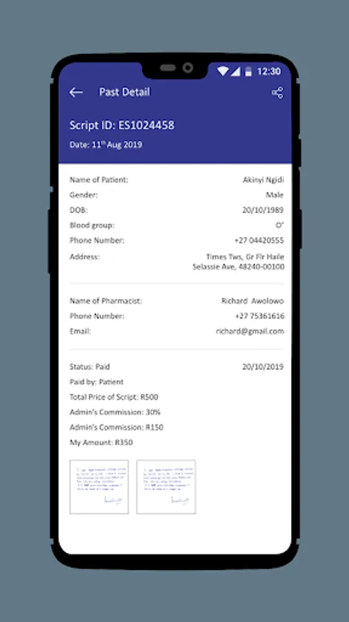 This application allows medical practitioners to upload a prescription and send an electronic link for the prescription to a patient. It allows the patient to pay for the prescription in real-time and then access the prescription once payment has been successful. In addition, the preferred pharmacist details can also be entered in the application so that the script can be sent directly to the pharmacist once paid. The prescription can be saved, printed or forwarded to another recipient once downloaded.