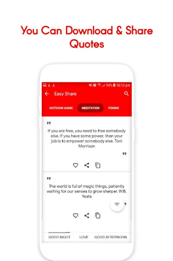 • Easy to like , share and copy quotes