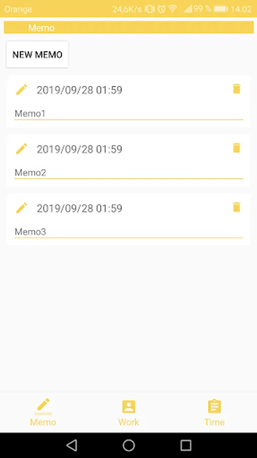 Touch the text to display the contents of the memo and edit it with the pen icon. You can delete the trash can icon by long pressing.