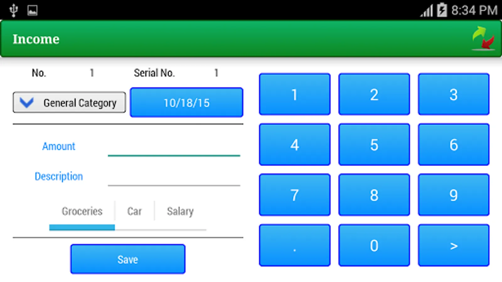 -Record income and expenses easily and quickly.