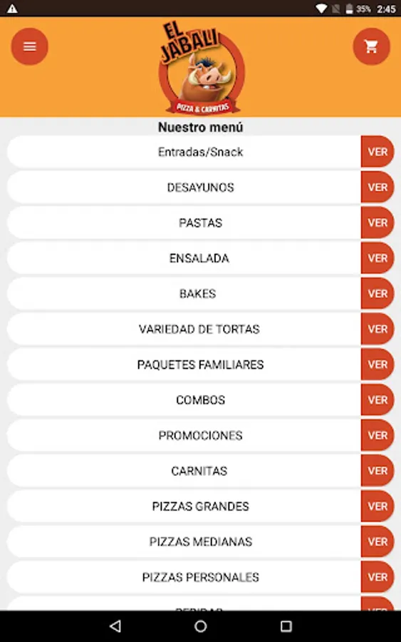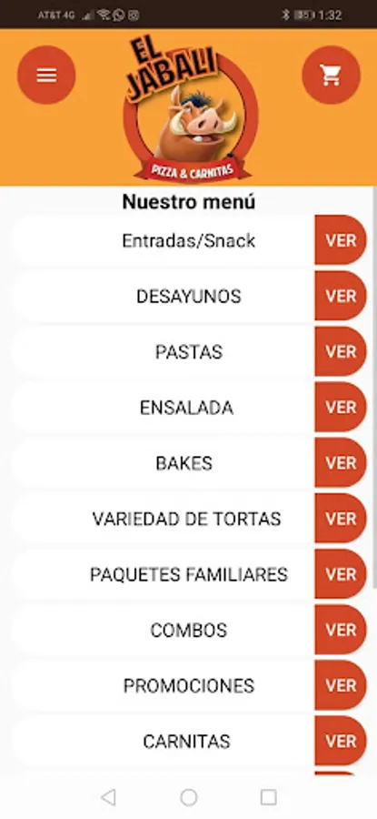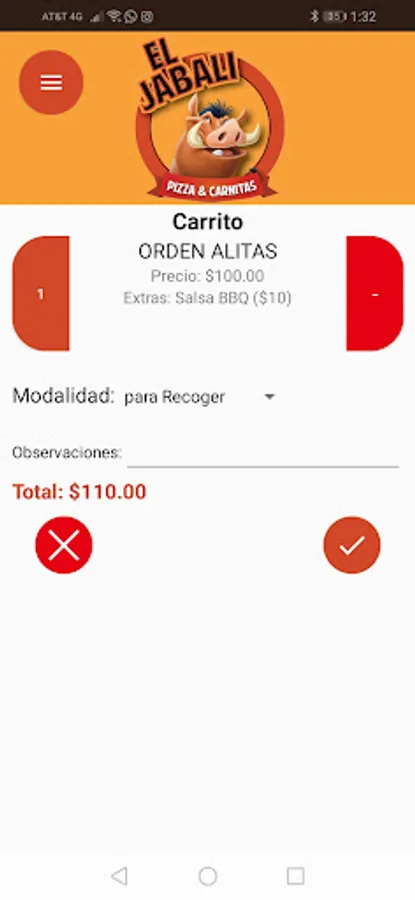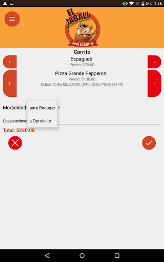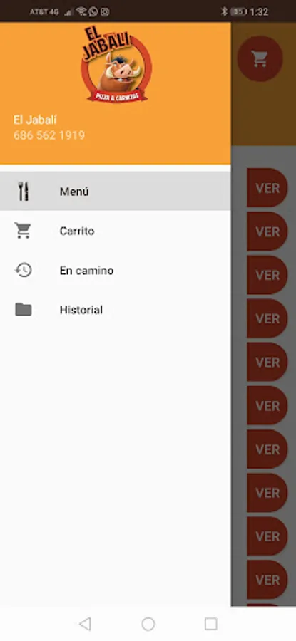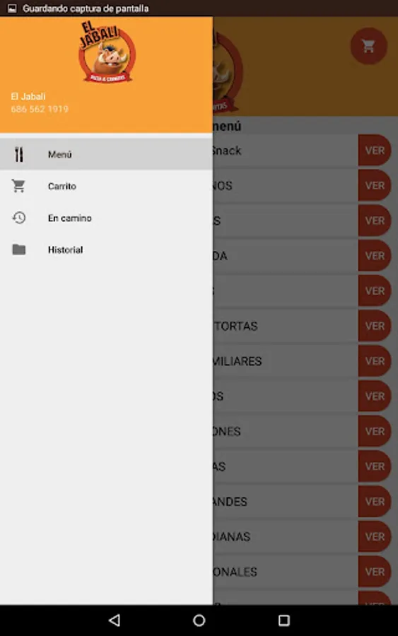 Application to order food at home from El Jabalí restaurant