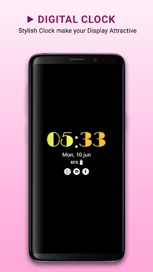Always on Display Amoled app that is basically design to display basic information like Mobile Time in (Digital Form, analog Form), Date, Custom Text, Custom Images from your Gallery, Messages notifications, Social Media Notifications, Battery Level and much more on your Lock Screen like live wallpaper.