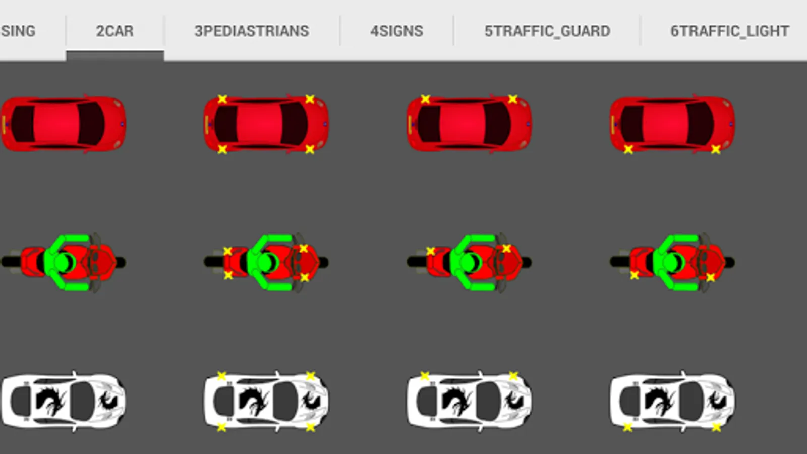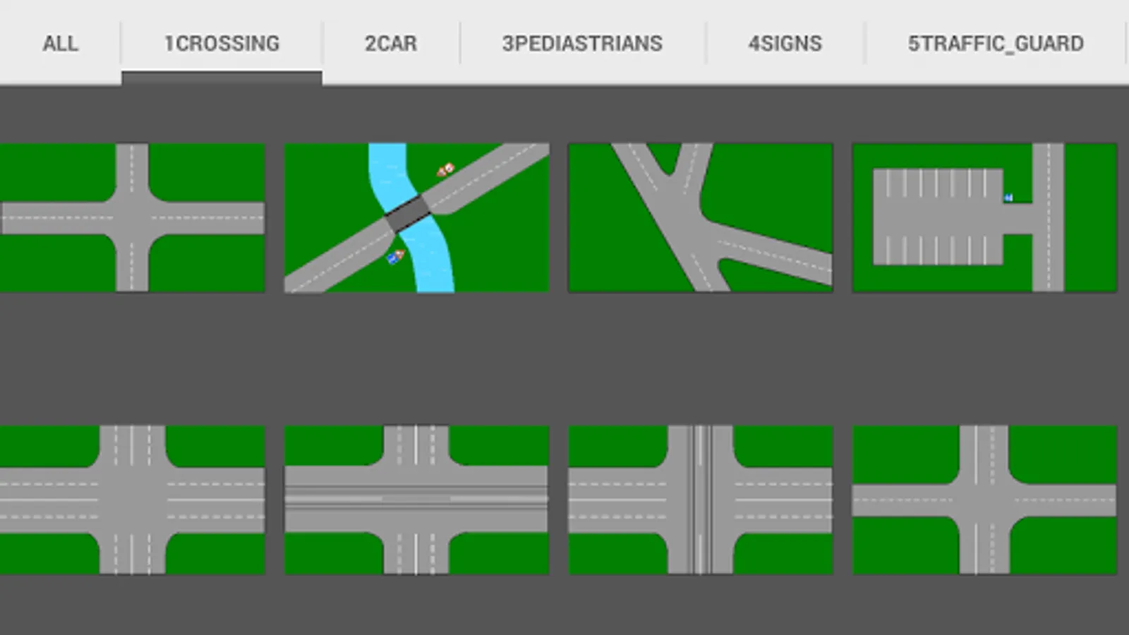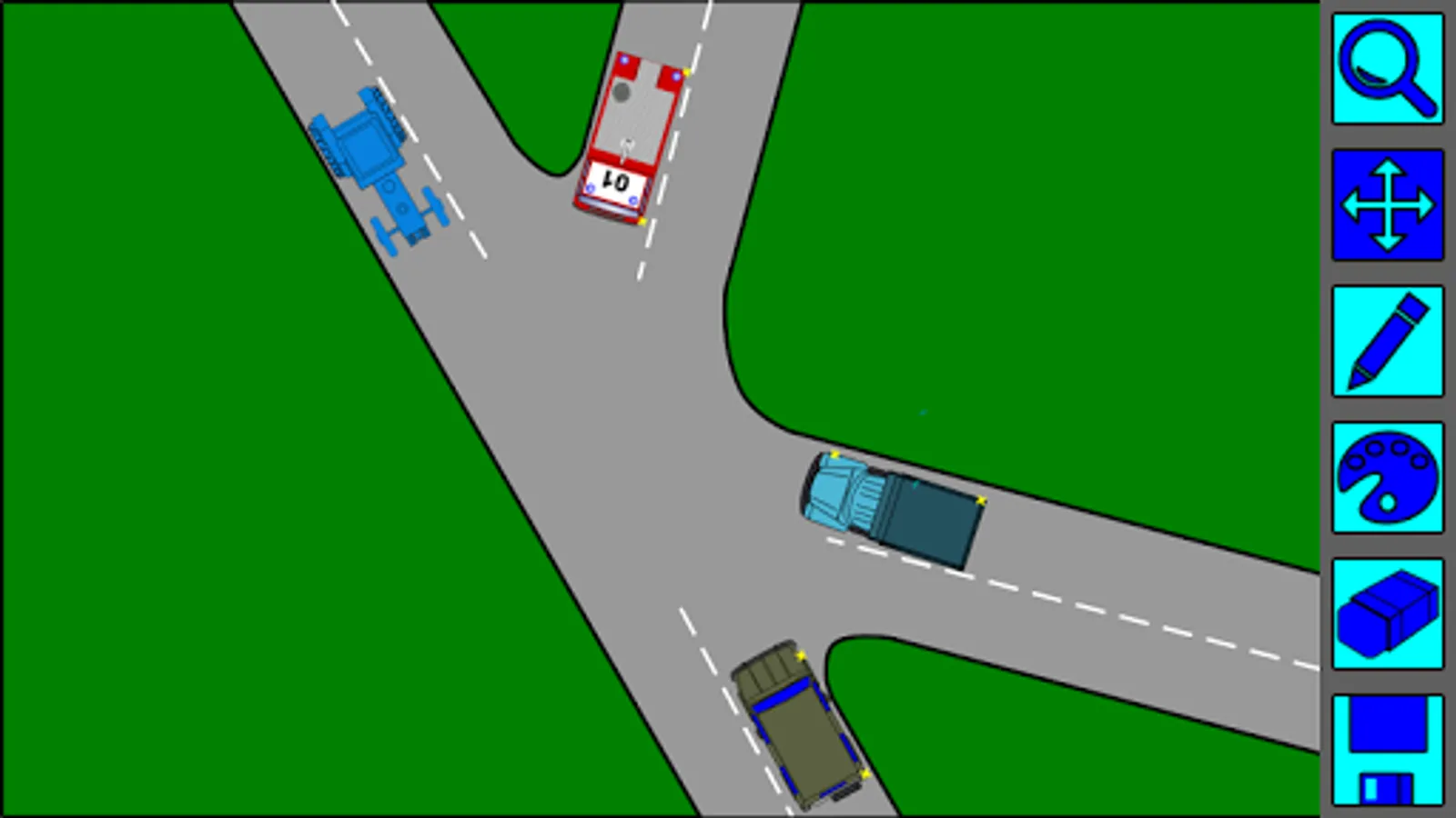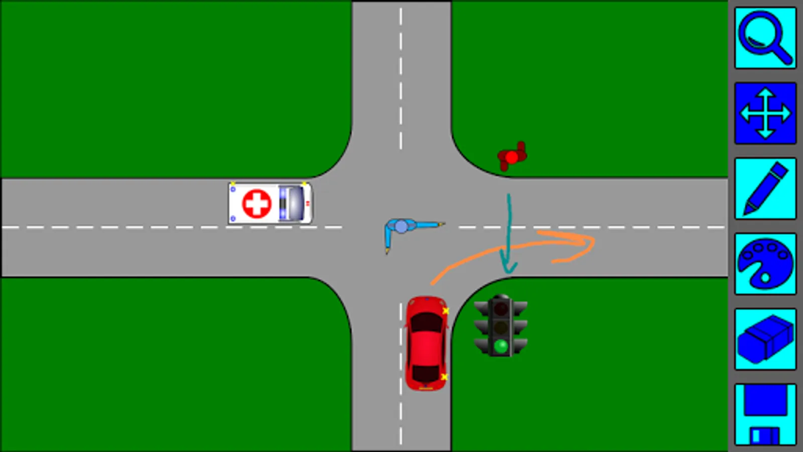 When you create a situation, you can use a variety of elements: vehicles, pedestrians use traffic signals, traffic controller, install road signs.