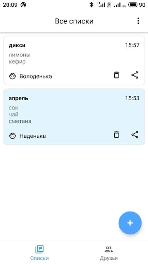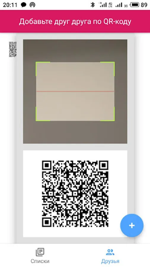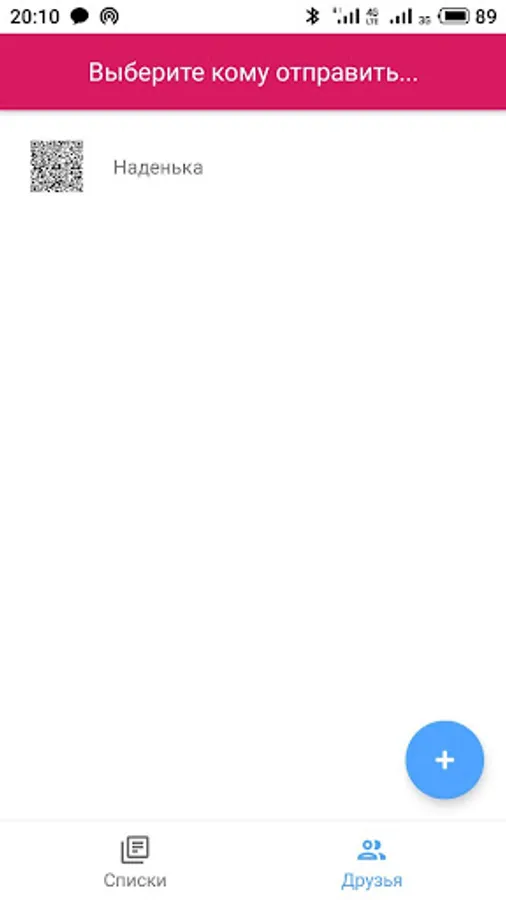 To send lists to each other, you need to connect each other via the QR code on the "Friends" tab (via the "+" button). And that’s it - you can send each other any lists! The sent list will be displayed immediately to the recipient.