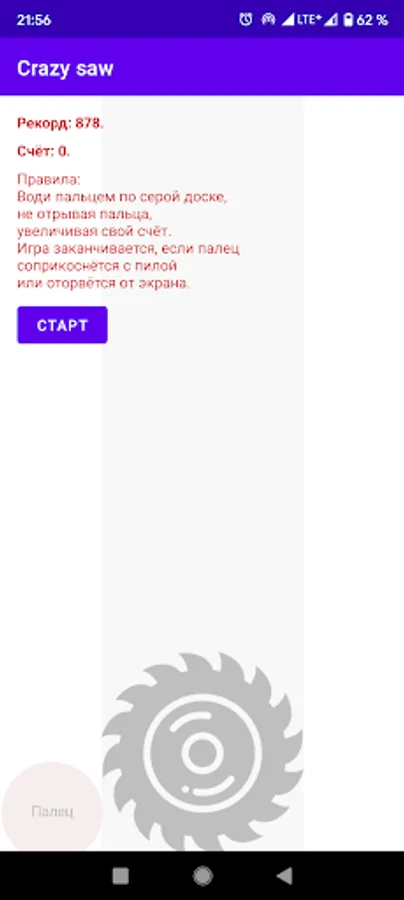 By running your finger on the gray board, without taking your finger off, increasing your score. The game ends if the finger touches the saw or comes off the screen.