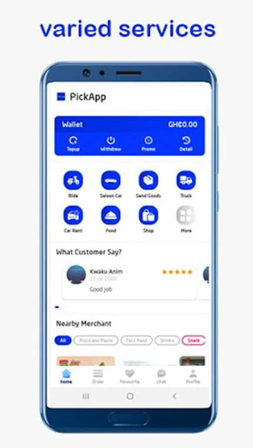PickApp allows you to enter where you want to send your stuff, and a rider pick up and deliver. We allow you to rent a car and buy items from nearby shops as well. This app is for the Ghanaian Market only. Powered by Menthane Consult