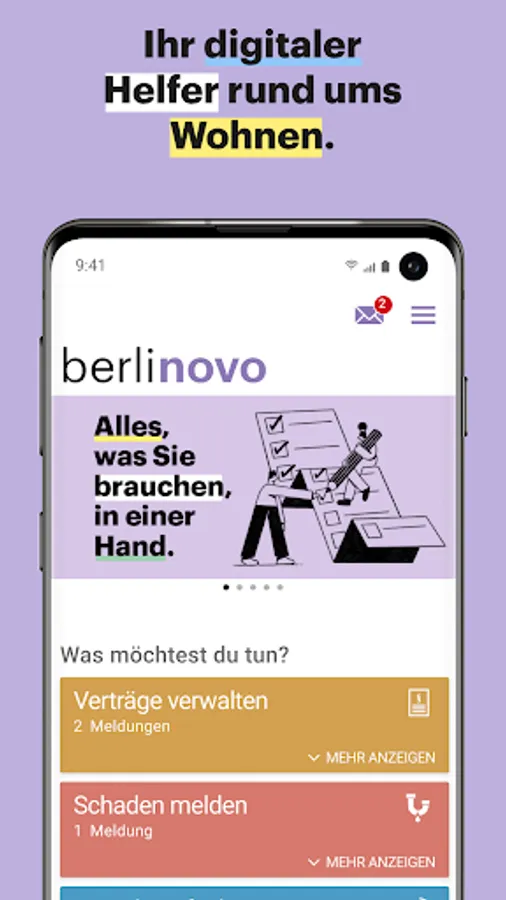 The berlinovo app is available to all of our tenants as a valuable service around the clock.