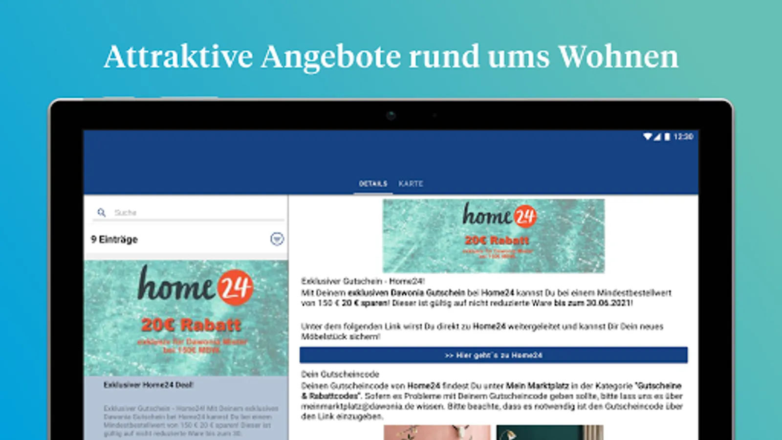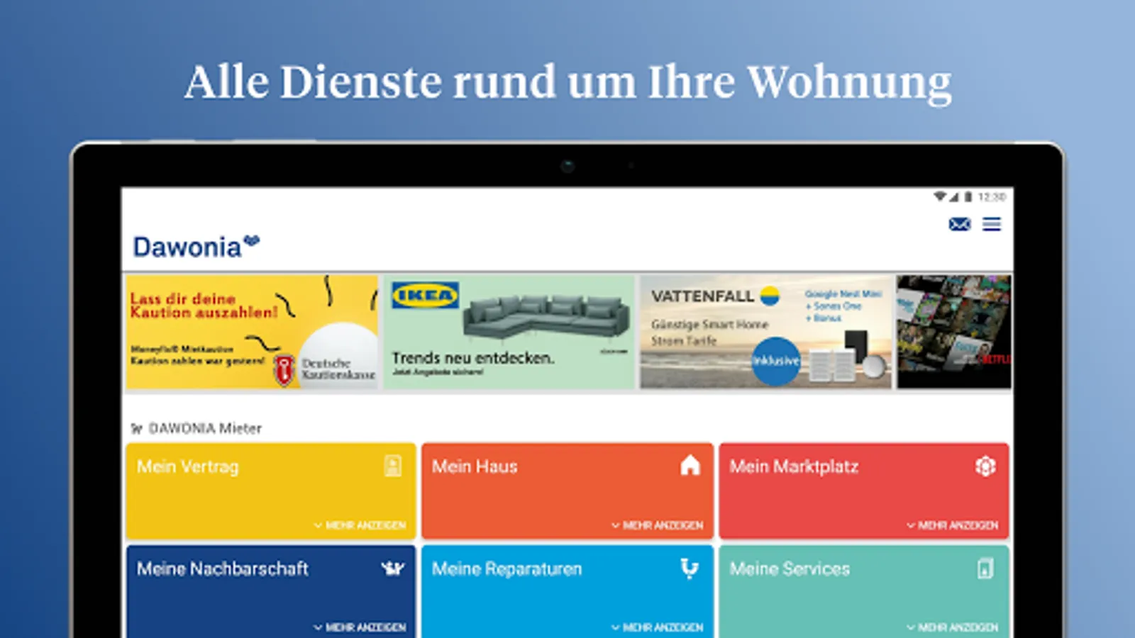 My Dawonia was specially developed for Dawonia tenants and enables quick and easy access to personal tenant data - around the clock. Other great services such as “My Marketplace” and “My Neighborhood” are also offered. There you will find attractive offers around the topic of housing and you can network in the neighborhood. The app can also be used in more than 25 languages!