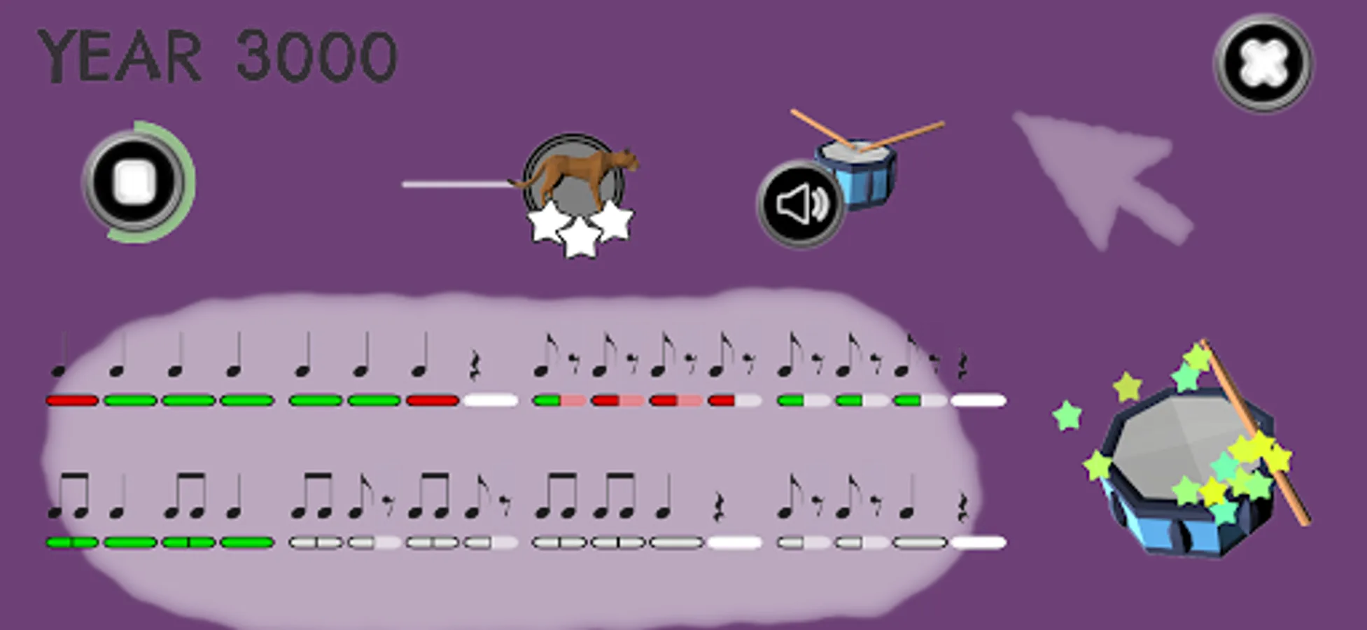 In addition, each song has 3 playback speeds (snail, hare and tiger).