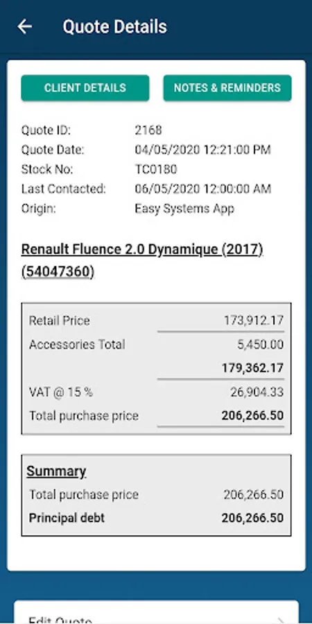 EasySystems Mobile is an electronic quoting system which allows a sales staff to action leads and send vehicle quotes and offer to purchases to their customers.