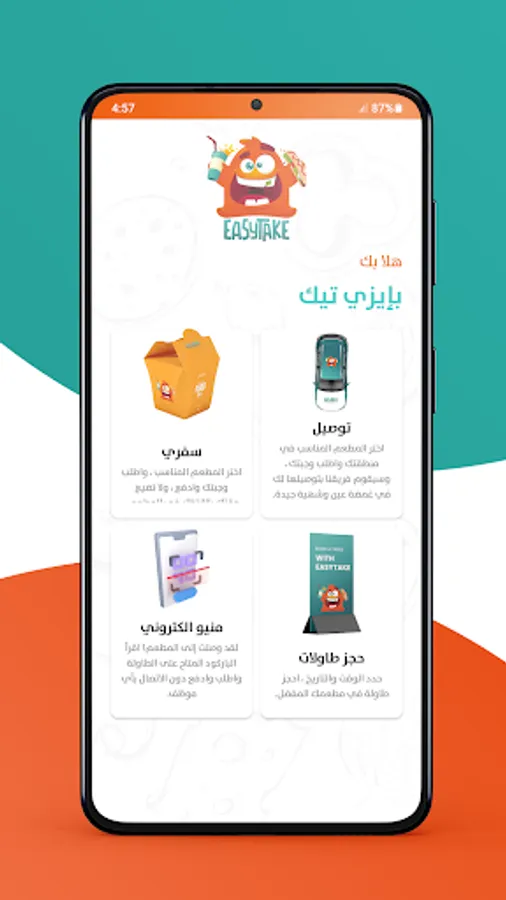 في أي وقت تشعرون بالجوع، ما عليكم إلا أن تدخلوا لتطبيق إيزي تيك وطلب وجبتكم المفضلة.