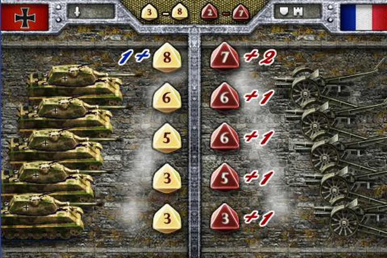 During the game you need to operate and distribute the three basic troops reasonably which include soldiers,tanks and artillery.(Soldier troop with high yields but general attack,tank troop with high attack and continue action when complete destroying the enemies,artillery troop attacks soldier troop and tank troop while they cannot strike back),judge on the current situation correctly at any time for the AI is outstanding.The attributes of arms are different from each country.For example,the tank of Germany is most powerful but with high price,the soldier of Soviet Union is cheapest,the navy of Britain is best.