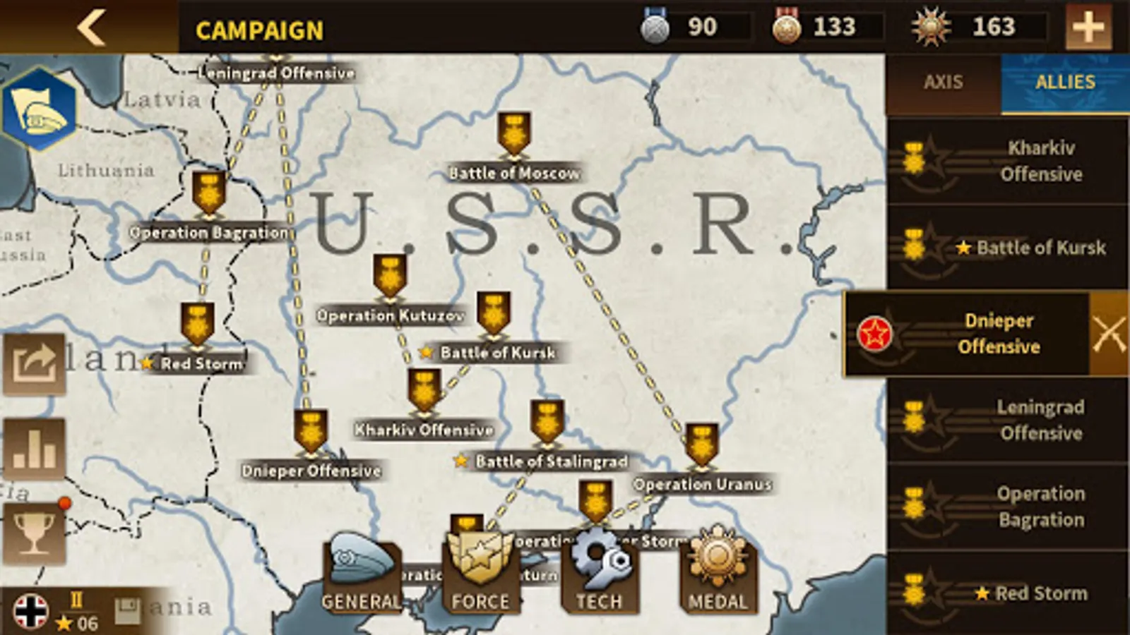 Join the war with more than 100 famous generals in the battle. Cooperate with your favorite camp and give the right command to Manstein, Guderian, Zhukov, MacArthur, Eisenhower, Montgomery, Patton, Rommel and many other generals. Get to know the strengths and weaknesses of war schema, use your strategy to change the war situation.Recruit special force from the Axis and Allies and cooperate to gain victory.