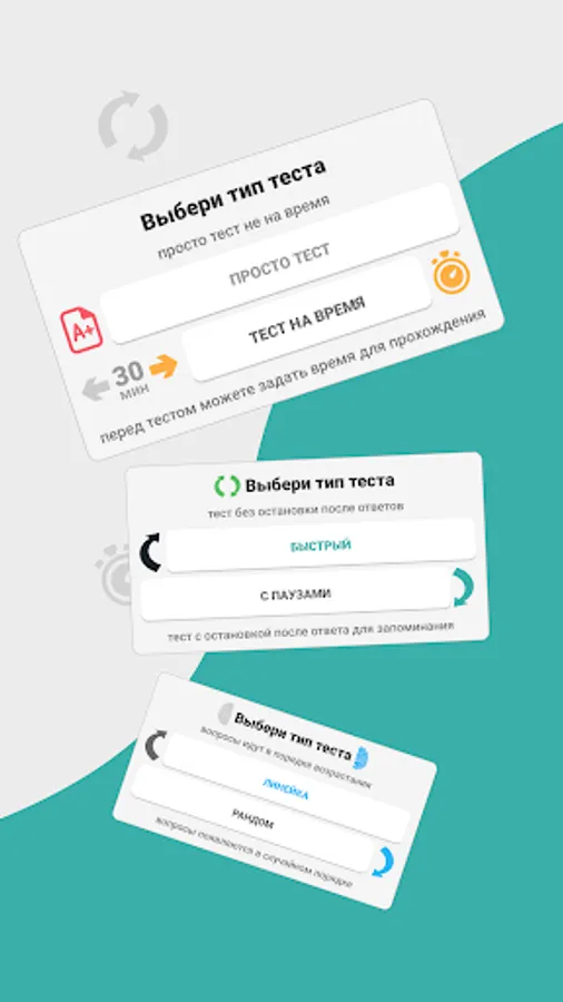 It allows you to prepare for the test in four modes 🅰️ ️ ️ ️
