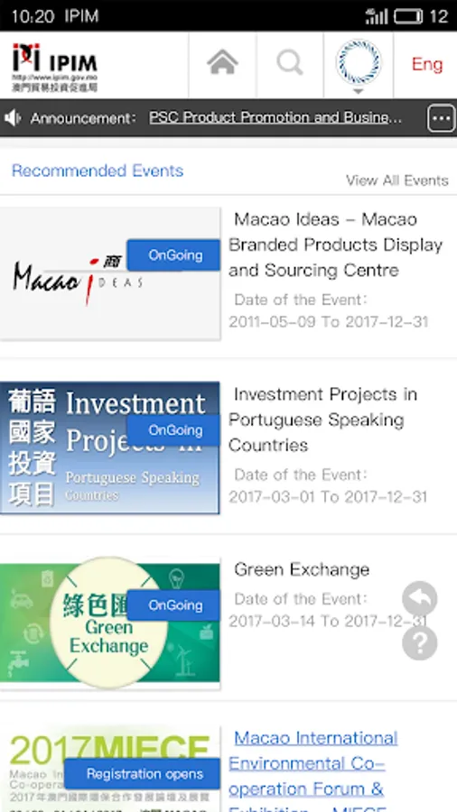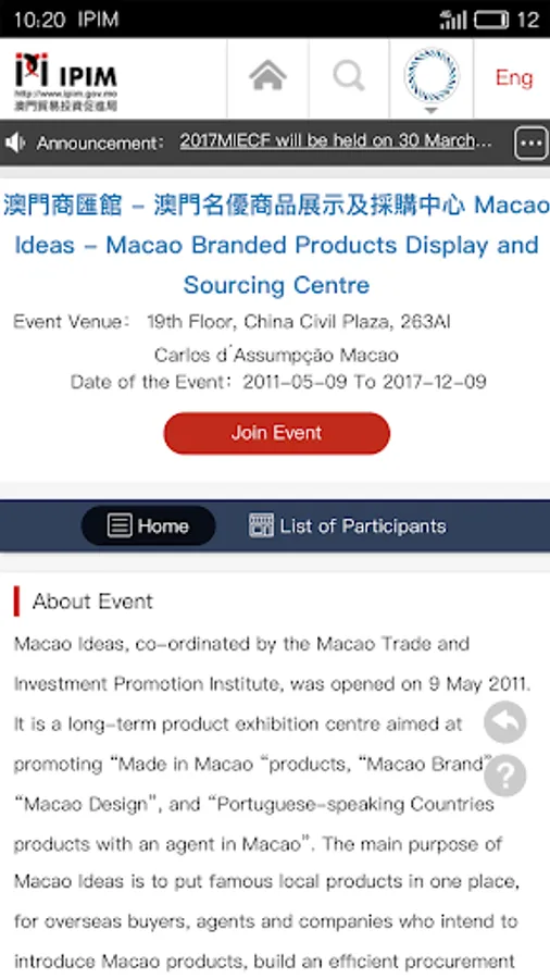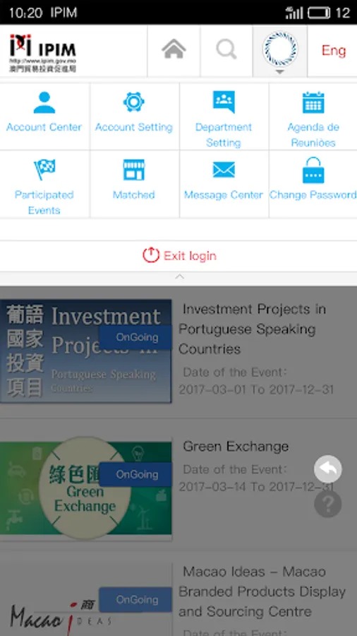 “Online Business Matching Service Platform” is developed by Macao Trade and Investment Promotion Institute. With this new online tool we aim to assist and facilitate local and overseas businesses to find partners worldwide and hopefully foster mutually beneficial economic trade and exchanges. We cordially invite you to register as user in this platform. Through this platform, registered users will be able to participate in the Business Matching Session of the exhibitions and events related to IPIM. Furthermore they will be able to publicize or look for projects, screen possible matching projects, and pre arrange meetings with interested parties and print out a preliminary meetings schedule.
