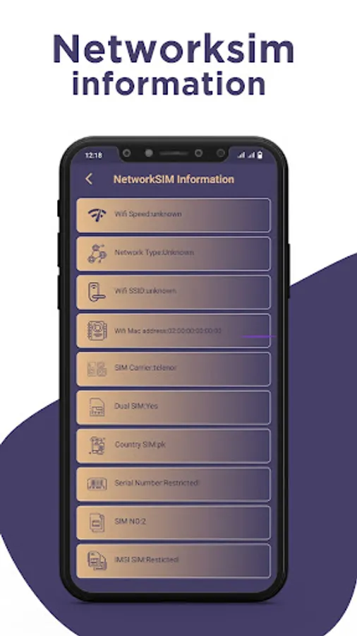 * Such as wifi SSID, wifi speed, wifi mac address, dual sim info, network type, carrier info i.e IMEI Number, IMSI, MCC and MNC, etc.