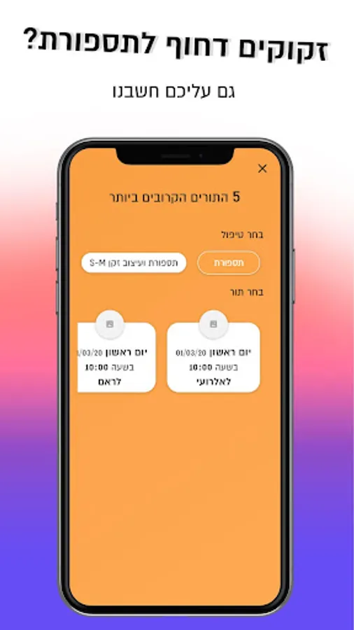 יש לבצע הרשמה קצרה כדי שנכיר אתכם ומשם כל מה שנשאר זה להזמין תור למי שבא לכם ומתי שבא לכם.