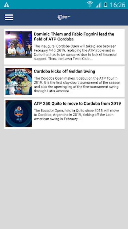 The official app for tennis tournament: Cordoba Open.