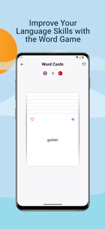 A great and fun “Word Card” feature that offers you unlimited foreign language practice anytime you like. Constantly improve your language skills. Just shuffle the words and test yourself! Save your favorite words so you can instantly recall with a click of a button!