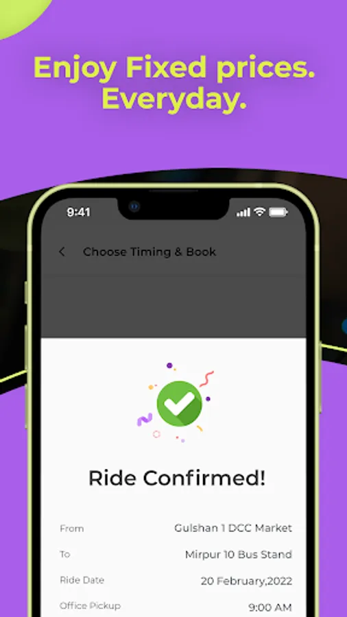 Simply choose your nearby pickup and drop off points from the app and select your preferred time of travel. If your route is not available in the system, just let us know and we will launch a route for you.