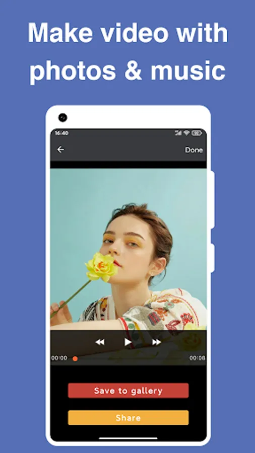 Slideshow Maker helps you to create slideshow movie from your moments(Photos/Selfies) in just a few taps.