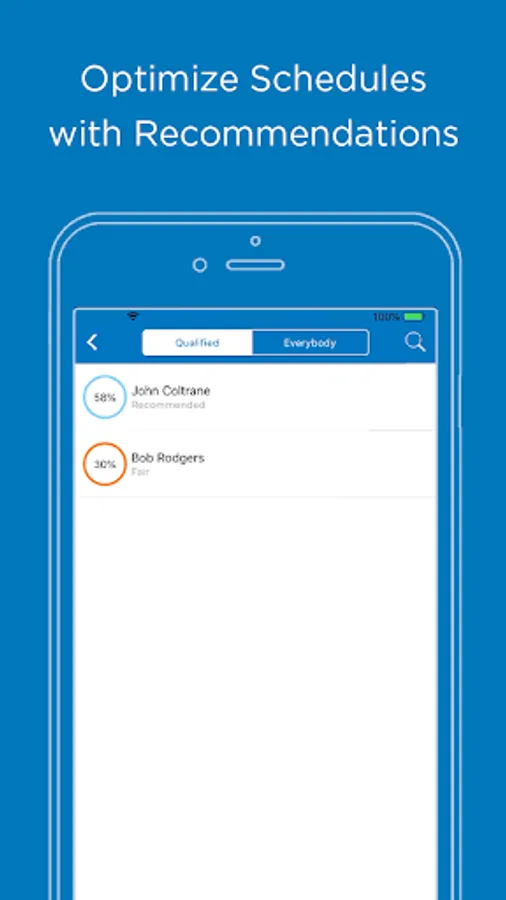 While scheduling, see recommendations based on default standard criteria and/or your own custom criteria (e.g. skill, performance, etc.) to make sure you make the best scheduling decisions.
