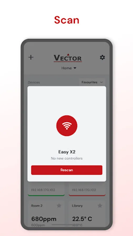 EasyX2 only works with Vector X2 controllers (TCX2, TCI2, TRI2, SxC2, SRD2, ... ) with Wi-Fi or Ethernet connection. The app scans the (W)LAN for connected controllers and list the devices. Each controller provides an integrated web interface which can be accessed directly using EasyX2. The X2 commissioning of the controllers need to be done in advance using the software "EasySet".