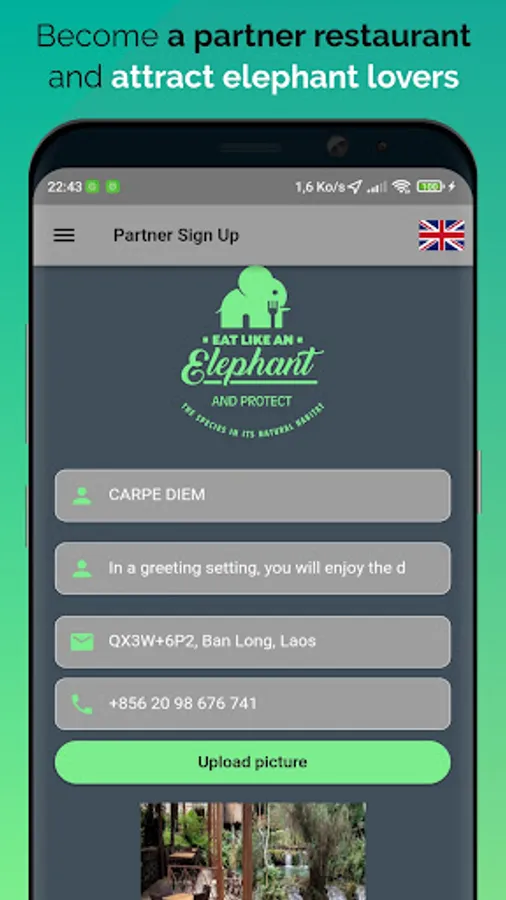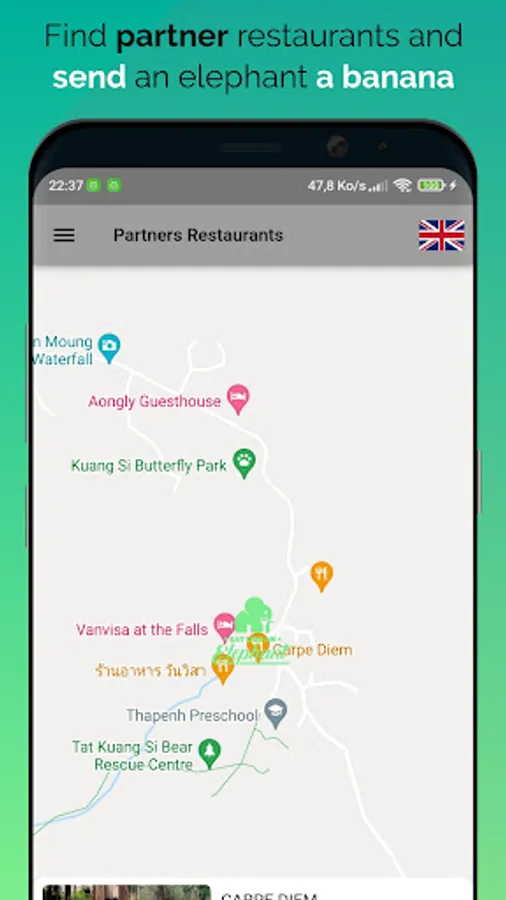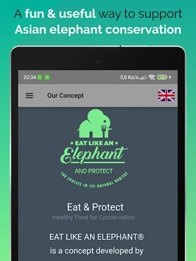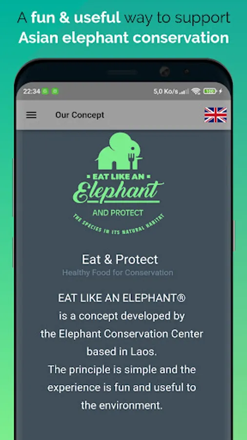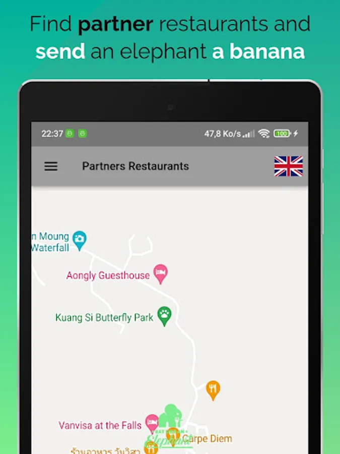 Simply download the App, find an Eat Like an Elephant® partner restaurant, order the Eat Like an Elephant® dish(es) on offer, enjoy your meal, treat your body, and save elephants by tipping an elephant a banana!