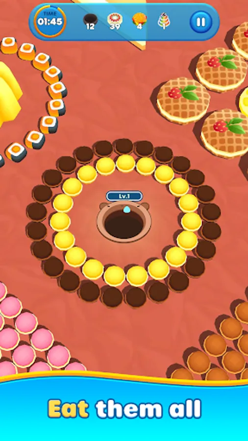 Experience the thrill of Eat Them All, a captivating game where you drag a hole to eat everything in its way!