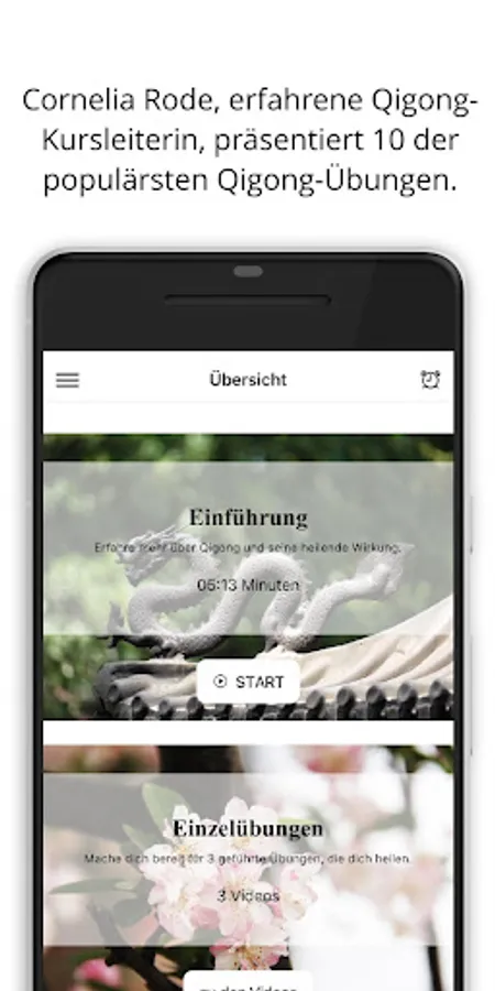 Cornelia Rode, an experienced alternative practitioner and Qigong course leader, presents 10 of the most popular Qigong forms with a total duration of approx. 70 minutes in German. The app also contains a short introduction to Qigong that explains the basic concepts of Qigong.