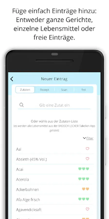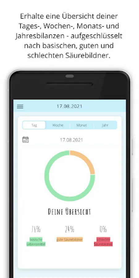 Now it is finally possible that you can track your alkaline eating habits. The acid-base calculator allows you to easily record individual foods and recipes (from BASISCH LECKER) and add them to your daily balance. You can also scan products with a barcode - then find out how these are metabolized (basic, neutral, good or bad acid generator) and can add them as well. Are you a professional and know how your food is metabolized? Then use the free entry and be even faster in recording.