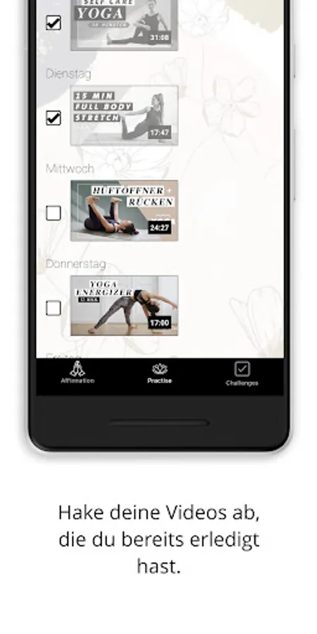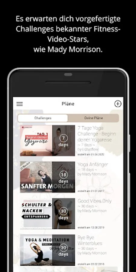 - choose from stored yoga challenges, e.g. from Mady Morrison