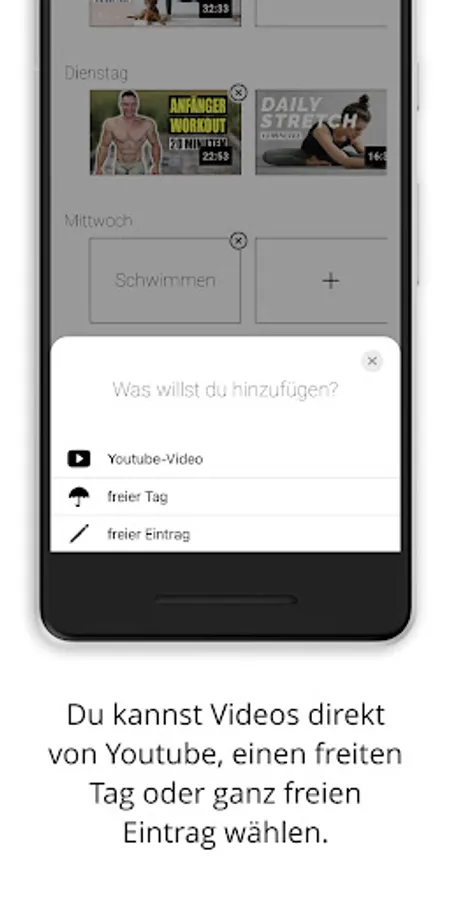 Do you love working out at home or on the go with your best YouTube videos? Then the video fitness planner with YouTube integration is just right for you to stay focused on your training plans - or to master any fitness or yoga challenge.