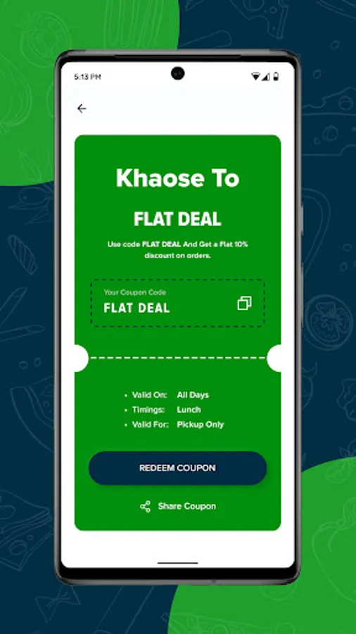 • Share Restaurant coupons and food deals with your friends & family.